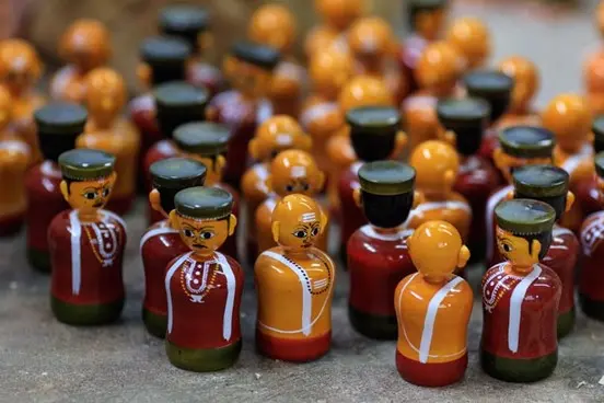 The craft village of Etikoppaka near Visakhapatnam is famous for its eco-friendly wooden toys made with natural lac dyes extracted from organic sources. The technique, known as lacquer turned wood, uses Ankudu wood and vegetable-based colours, representing sustainable design, non-toxic material science and traditional rural economics.